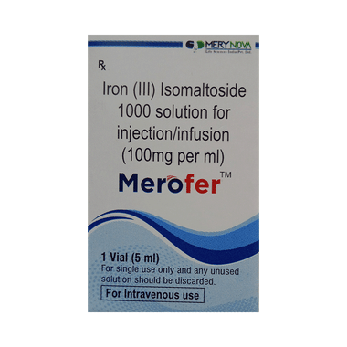 Merofer Injection is used to regulate hemoglobin levels in the human body. It is usually given to patients who have iron deficient anemia or iron deficiency. The doctor may suggest using this medicine till the hemoglobin level becomes normal. Do consult your doctor to understand the usage of this medicine properly.