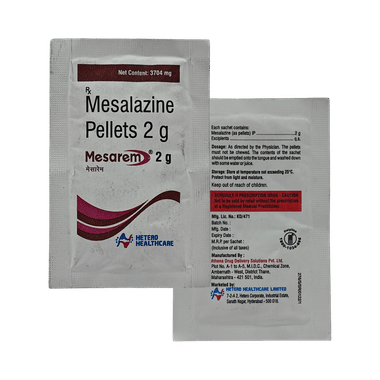 Mesarem 2gm Pellets may also be used to treat another type of bowel disease known as Crohn’s ileocolitis. It should be taken with food. The dose will depend on what you are being treated for but take it exactly as your doctor prescribes. You should keep taking this medicine for as long as your doctor recommends. If you stop treatment too early your symptoms may come back and your condition may worsen.