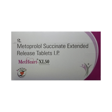 Metheart-XL50 Tablet may be prescribed alone or together with other medications. The dose and frequency will depend on what you are taking it for and the severity of your condition. It may be taken on an empty stomach or with a meal, but take it regularly at the same time each day to get the maximum benefit. It may take several weeks before you get the full benefit of this medicine, and you may need to take it for the rest of your life. However, it is important to continue taking it even if you feel well. Most people with high blood pressure do not have symptoms. If you stop taking it, your condition may worsen.