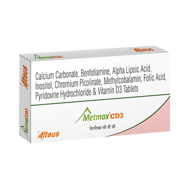 Metmax CD3 Tablet is a combination of vitamins and mineral supplements prescribed to treat vitamin and other nutritional deficiencies. It ensures proper growth and functioning of the body and strengthens immunity.