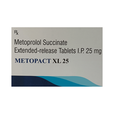 Metopact XL 25 Tablet may be prescribed alone or together with other medications. The dose and frequency will depend on what you are taking it for and the severity of your condition. It may be taken on an empty stomach or with a meal, but take it regularly at the same time each day to get the maximum benefit. It may take several weeks before you get the full benefit of this medicine, and you may need to take it for the rest of your life. However, it is important to continue taking it even if you feel well. Most people with high blood pressure do not have symptoms. If you stop taking it, your condition may worsen.