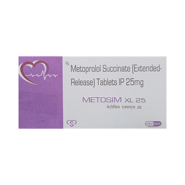 Metosim XL 25 Tablet may be prescribed alone or together with other medications. The dose and frequency will depend on what you are taking it for and the severity of your condition. It may be taken on an empty stomach or with a meal, but take it regularly at the same time each day to get the maximum benefit. It may take several weeks before you get the full benefit of this medicine, and you may need to take it for the rest of your life. However, it is important to continue taking it even if you feel well. Most people with high blood pressure do not have symptoms. If you stop taking it, your condition may worsen.