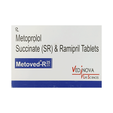 It is advised to take Metoved-R 25/2.5 Tablet SR with food at a fixed time each day to maintain consistent levels of medicine in the blood. Retain taking it for as long as advised by your doctor. Even if you feel well, do not stop this medicine on your own because high blood pressure often has no symptoms. If you stop taking it, your condition may get worse. Retaining active with regular exercise, reducing your weight and eating a healthy diet will also help control your blood pressure. Follow your doctor’s advice while taking this medicine.