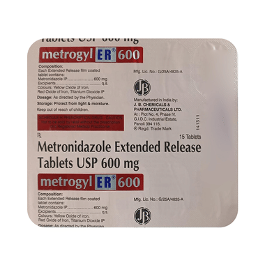MEtrogyl 600 Tablet ER is an antibiotic medicine that helps your body fight infections caused by bacteria and parasites. It is used to treat infections of the liver, stomach, intestines, vagina, brain, heart, lungs, bones, and skin. It may also help prevent an infection after surgery.