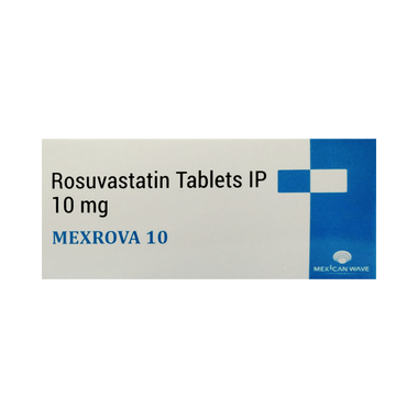Mexrova 10 Tablet belongs to a group of medicines called statins. It is used to lower cholesterol and triglyceride levels and reduce the risk of heart disease. Cholesterol is a fatty substance that builds up in your blood vessels and causes narrowing, which may lead to a heart attack or stroke.