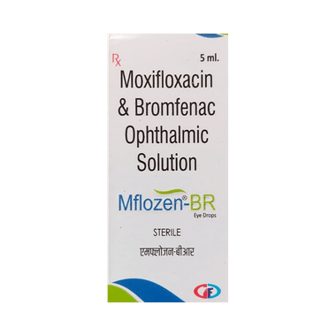 Mflozen-BR Eye Drop is a prescription medicine used in the treatment of bacterial eye infections. It helps in relieving pain, itching, discomfort, pain, and irritation caused by the infection. It is also used to relieve postoperative pain, swelling, and redness.Mflozen-BR Eye Drop is to be used only in the affected eye in the dose and duration as advised by the doctor. Wash your hands before using this medicine. It is advised to check the label for directions before use. Do not skip any doses and finish the full course of treatment even if you feel better. Stopping the medicine too early may lead to the infection returning or worsening.