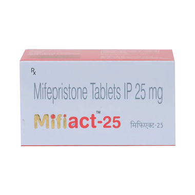 Mifiact 25mg Tablet is a medicine used in the treatment of uterine fibroids, noncancerous growths in the uterus that can cause heavy bleeding, pain, and pressure. It blocks the hormone progesterone, which fibroids rely on to grow, helping shrink them and ease symptoms like heavy bleeding and pelvic pain.