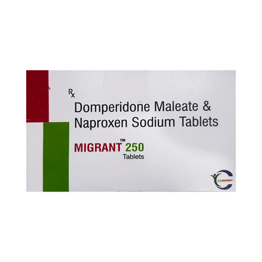 Migrant 250 Tablet is a combination of two medicines used to relieve migraine symptoms such as headache, nausea, and vomiting. Naproxen works by blocking chemical messengers responsible for pain and inflammation. Domperidone helps prevent nausea and vomiting by improving gut movement and acting on the brain’s vomiting center. Together, they provide effective relief from both headache and associated stomach discomfort during migraines.