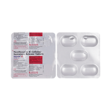 Milixim-M 400mg/400mg Tablet SR is a combination medicine that is used to treat various types of bacterial infections. It fights against the microorganisms to prevent their growth and further spread of the infection.Milixim-M 400mg/400mg Tablet SR is a prescription medicine. It is advised to take it as per the prescription. It can be taken with or without food, but it must be taken at a fixed time to ensure better efficacy. Do not consume more than the recommended dose, as this may have harmful effects on your body. If you miss a dose, take it as soon as you remember. The course of the treatment must be completed even if you feel better. Sudden discontinuation of the treatment may affect the potency of the medicine.