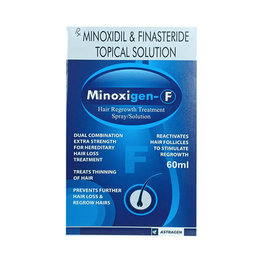 Employ Minoxigen-F Solution in the dose and duration as prescribed by your doctor or as instructed on the label. Immaculate and dry your scalp before using it. It may take several months before you notice any hair growth. The first growth could be soft, colorless, and barely visible. Employ it in the exact dose and duration as prescribed by your doctor. Using more than recommended will not speed up hair growth and may increase the likelihood of side effects. Employ it for as long as the doctor has prescribed to maintain proper hair growth. If your condition does not improve after using it for 4 to 6 months, tell your doctor. This medicine is to be used only by men and is not indicated in women.