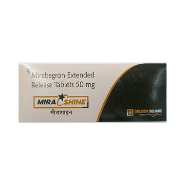 Mira Shine 50mg Tablet ER is used to treat symptoms of overactive bladder that includes increased or frequent urination, urgent need to urinate and inability to control urination. It helps to relax the muscle surrounding the bladder and increase it's ability to store urine.
