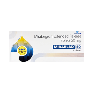 Mirablad 50 Tablet ER is used to treat symptoms of overactive bladder that includes increased or frequent urination, urgent need to urinate and inability to control urination. It helps to relax the muscle surrounding the bladder and increase it's ability to store urine.