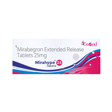 Mirahype 25mg Tablet ER is used to treat symptoms of overactive bladder that includes increased or frequent urination, urgent need to urinate and inability to control urination. It helps to relax the muscle surrounding the bladder and increase it's ability to store urine.