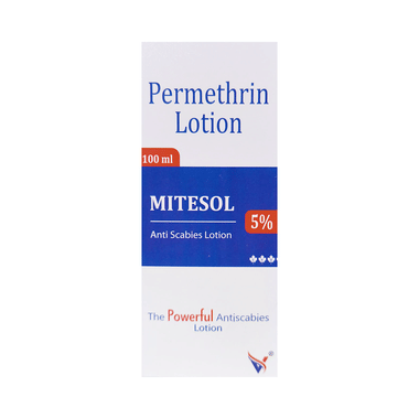 Mitesol 5% Lotion is an antiparasitic medication. It is used to treat scabies, a condition where tiny insects infest and irritate your skin. This medicine works by killing the insects (mites) and their eggs.Your doctor will explain how to use Mitesol 5% Lotion and how much you need. Read the instructions that come with the medicine carefully to ensure correct use. The skin should be clean, dry, and cool before application. The whole body should be washed thoroughly 8–12 hours after using this medicine.