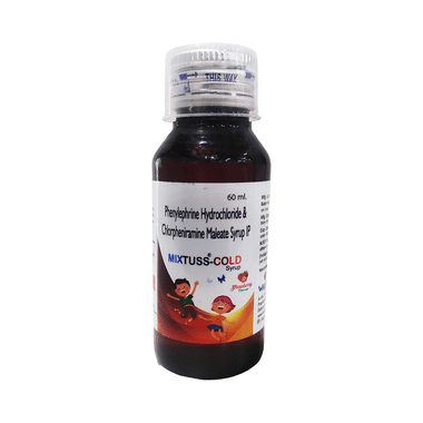 Mixtuss-Frigid Syrup Strawberry is a combination of two medicines that help to relieve the symptoms of cold. It consists of Chlorpheniramine, an antiallergic that relieves allergy symptoms like runny nose, watery eyes, and sneezing. It also consists of Phenylephrine, a decongestant that narrows the small blood vessels providing relief from congestion or stuffiness in the nose.