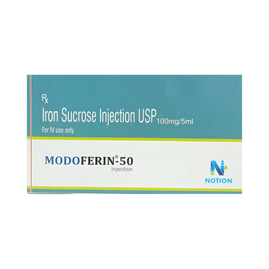 Modoferin 50 Injection is given by slow infusion (drip) into a vein by your doctor or nurse. Your doctor will decide the dose you need and how many injections you should have to improve your anemia. It will also help to eat a well-balanced diet that has enough iron. Outstanding sources of iron include pulses (dal), green leafy vegetables like spinach, beans, eggs, dry fruits, and non-vegetarian foods.