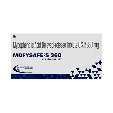 Mofysafe-S 360 Tablet DR belongs to a group of medicines called immunosuppressants. It is used with other medicines to prevent your body from rejecting an organ (such as a kidney, heart, or liver) after a transplant. It works by weakening your body’s immune system, so it does not attack the transplanted organ.