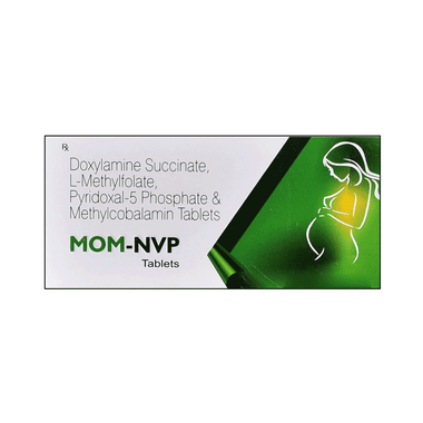 Mom-NVP Tablet has all active forms of vitamins which help in preventing neural tube defects, pregnancy-related anemia and associated complications of pregnancy due to elevated homocysteine levels. It should be used in the dose and duration as advised by the doctor. Check the label before use.