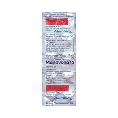 Take this medicine in the dose and duration as advised by your doctor. Swallow it as a whole. Do not chew, crush or break it. Monovono 10 Tablet may be taken with or without food.