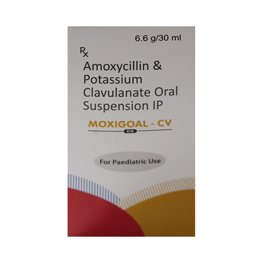 Moxigoal-CV DS Oral Suspension is an antibiotic medicine that helps treat bacterial infections of the ear, nose, throat, chest, lungs, teeth, skin, and urinary tract. It is capable of killing bacteria that have become resistant to other therapies and thus also helps treat tuberculosis that is resistant to other treatments.