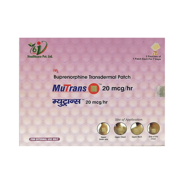 Mutrans 20mcg/hr Transdermal Patch is used to treat moderate to severe pain and drug dependence/addiction to opioids. It helps prevent withdrawal symptoms that may be caused due to withdrawal of other opioids.