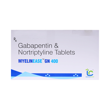 Myelinease GN 400 Tablet is a combination of two medicines: Gabapentin and Nortriptyline. This medicine is useful in the treatment of nerve pain (Neuropathic pain). It calms the damaged or overactive nerves by acting on the brain. Thereby, it decreases the pain sensation.