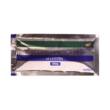 Myestin 60mg Tablet is used in the treatment of myasthenia gravis (a disease-causing muscle weakness and tiredness). It helps strengthen the muscles, promotes bowel function, and stimulates the bladder muscles.