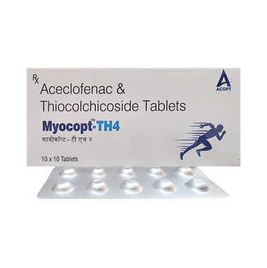 Myocopt-TH4 Tablet is a combination of two medicines: Aceclofenac and Thiocolchicoside. This medication helps in relieving muscle pain. It relaxes the muscles by acting on the central nervous system and lowering chemical substance in the body that cause pain and inflammation.