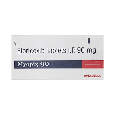 Affirmative, Myopix 90mg Tablet is a pain killer. It helps to reduce pain and inflammation in the joints and muscles due to osteoarthritis, rheumatoid arthritis, ankylosing spondylitis, and gout. It is also used to relieve dental pain after dental surgery.