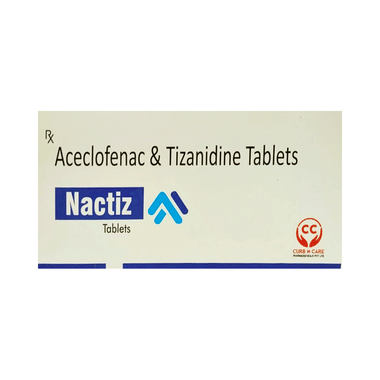 Nactiz Tablet is a combination of two medicines: Aceclofenac and Tizanidine. This medication helps in relieving muscle pain. Tizanidine is a muscle relaxant which works by acting on the central nervous system. Aceclofenac works by lowering the chemical substance (prostaglandins) in the body that causes pain and inflammation.