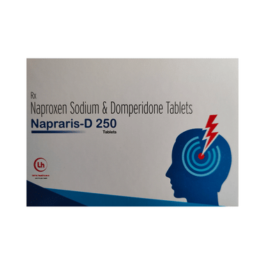Napraris-D 250 Tablet is a combination of two medicines used to relieve migraine symptoms such as headache, nausea, and vomiting. Naproxen works by blocking chemical messengers responsible for pain and inflammation. Domperidone helps prevent nausea and vomiting by improving gut movement and acting on the brain’s vomiting center. Together, they provide effective relief from both headache and associated stomach discomfort during migraines.