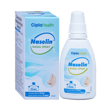 Naselin Nasal Spray is a medicine used to treat nasal congestion (blocked nose) caused by the common cold or flu, hay fever, and other allergies. It narrows the blood vessels in your nose to relieve nasal congestion and blockage.Naselin Nasal Spray should be used as you have been advised by your doctor. Normally, you should blow your nose gently before using it, keep one nostril closed while applying the medicine into the other, and then sniff hard to make sure it reaches deep into the nose. Then repeat the same for the other nostril. It provides relief very quickly and can last for several hours. It provides only temporary relief, but do not use it more often or for longer than recommended. If you use this medicine too often or for too long, it may worsen your symptoms rather than improve them.