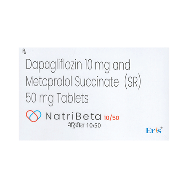 Natribeta 10/50 Tablet SR is used to treat heart failure after a heart attack. It helps the kidneys remove excess glucose and sodium, reduces the heart’s workload, slows the heart rate, and lowers blood pressure. This improves heart efficiency, making it easier to pump blood, and reduces the risk of complications.