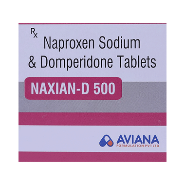 Naxian-D 500 Tablet is a combination of two medicines used to relieve migraine symptoms such as headache, nausea, and vomiting. Naproxen works by blocking chemical messengers responsible for pain and inflammation. Domperidone helps prevent nausea and vomiting by improving gut movement and acting on the brain’s vomiting center. Together, they provide effective relief from both headache and associated stomach discomfort during migraines.