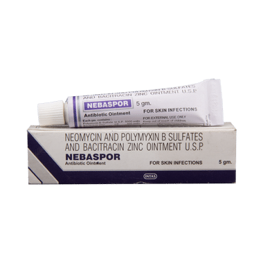 Nebaspor Ointment is a combination medicine. It is used to treat various types of bacterial skin infections. It minimizes symptoms of skin infection such as redness, swelling, itching, etc., by acting against the infection-causing microorganisms.
