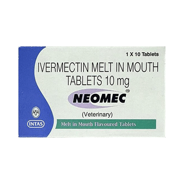 Neomec Ivermectin Pet Tablet MD is an antiparasitic medicine used to treat and control a wide range of internal and external parasitic infections in animals. It is effective against various types of gastrointestinal worms, lungworms, bots, and skin parasites. It works by killing and eliminating the parasites from the body.