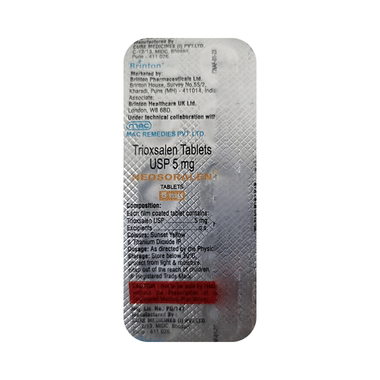 Neosoralen Tablet is best taken after meals. Taking with food helps increase the medication's absorption and decrease nausea. Take it in the dose and duration as advised by the doctor. Retain taking it for as long as your doctor recommends. If you stop treatment too early, your symptoms may come back, and your condition may worsen.