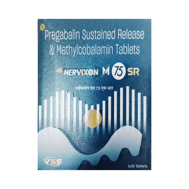 Nervixon M 75 SR Tablet is a combination of two medicines: pregabalin and methylcobalamin. It is used for the treatment of nerve pain (neuropathic pain). It calms the damaged or overactive nerves by acting on the brain, thereby decreasing the pain sensation. It also helps in the regeneration of damaged nerves in the body.