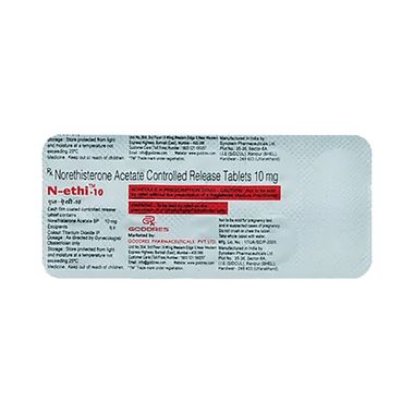 N-Ethi 10 Tablet CR is used to treat various menstrual problems including painful, heavy, or irregular periods, premenstrual syndrome (PMS), and a condition called endometriosis. It is a man-made version of the natural female sex hormone progesterone.