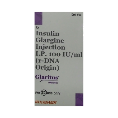 New Glaritus Injection is a man-made insulin that is very similar to human insulin. It has a long and steady (constant) effect on blood sugar levels, lasting an entire day. This makes it suitable for use once daily. It treats type 2 diabetes mellitus in adults and type 1 diabetes mellitus in adults and children.