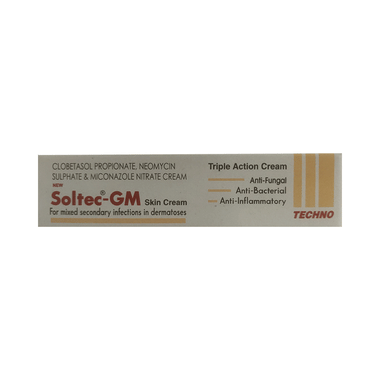 New Soltec-GM Cream is a combination medicine used in the treatment of various types of skin infections. It minimizes symptoms of inflammation such as redness, swelling, and itching by acting against the infection-causing microorganisms.