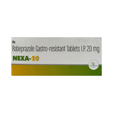 Nexa 20 Tablet is a medicine that reduces the amount of acid produced in your stomach. It is used in the treatment of acid-related diseases of the stomach and intestine such as acid reflux, peptic ulcer disease, and Zollinger-Ellison syndrome. It provides relief from symptoms and promotes healing.