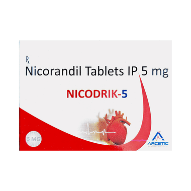 Nicodrik 5 Tablet is a medicine used to prevent and treat heart-related chest pain (angina). It is usually prescribed when other heart medicines are either not suitable or have not worked. It reduces the risk of an angina attack by widening blood vessels and improving blood flow to the heart.