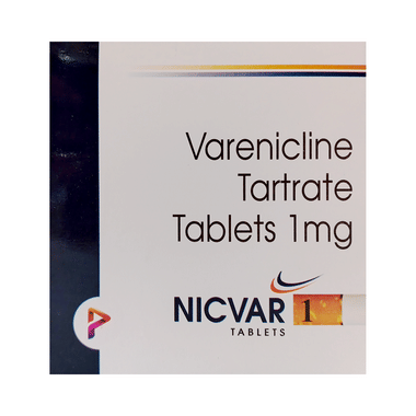 Nicvar 1 Tablet helps quit smoking by reducing the craving for a cigarette and the irritable feeling that occurs when you stop smoking. It works by blocking the nicotine effect on the brain and this suppresses enjoyment while smoking or the urge to smoke.
