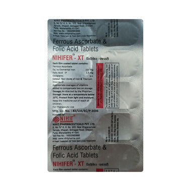 Nihifer-XT Tablet usually starts working within a few hours of taking it. If you are taking it for iron deficiency anemia, you may start feeling better after a few weeks of taking it. In case you are taking it during pregnancy, you may not notice any difference, but this does not mean that the dose is not working. Continue taking Nihifer-XT Tablet for the duration recommended by your doctor.