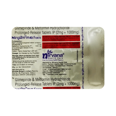 Nirglim M 2 Forte Tablet PR belongs to a category of medicines known as anti-diabetic drugs. It is a combination of two medicines used to treat type 2 diabetes mellitus in adults. It helps control blood sugar levels in people with diabetes.