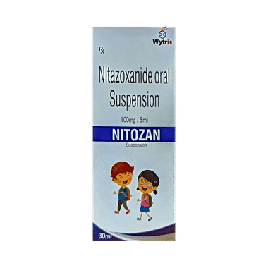 Nitozan Oral Suspension is an antiparasitic medication that is used in the treatment of diarrhea and worm infections in children. It inhibits the growth of the parasite thereby treating the infection.
