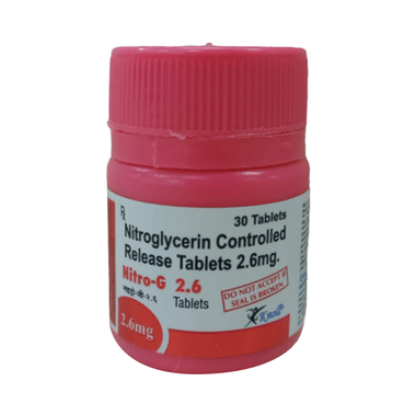 Nitro-G 2.6 Tablet CR should be taken in the dose and duration as advised by your doctor. It may be taken with or without food, preferably at a fixed time each day. Do not consume more than the recommended dose, as this may have harmful effects on your body. You can develop tolerance to this medicine over time, which means that the same dose becomes less effective. You have to stick to a really specific dosing schedule to prevent this from happening.