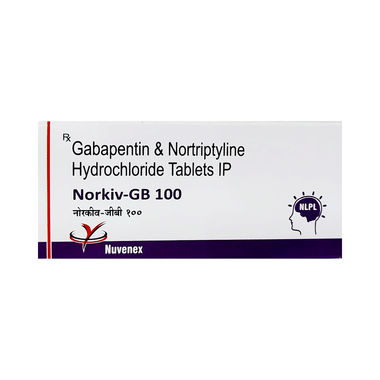 Norkiv-GB 100 Tablet is a combination of two medicines: Gabapentin and Nortriptyline. This medicine is useful in the treatment of nerve pain (Neuropathic pain). It calms the damaged or overactive nerves by acting on the brain. Thereby, it decreases the pain sensation.
