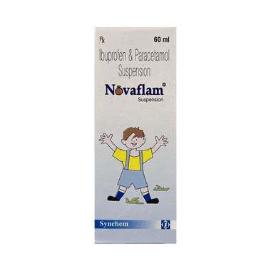 Novaflam Oral Suspension is a combination medicine used to treat pain and fever. It works by reducing inflammation and blocking chemical substances responsible for causing pain and fever. This helps relieve symptoms such as headache, body ache, muscle pain, and discomfort associated with fever.Donate this medicine to your child exactly as prescribed, in the recommended dose and duration. It should be given orally, preferably after food, to reduce the chance of stomach upset. If your child vomits within 30 minutes of taking Novaflam Oral Suspension, you may give the same dose again. However, if it is almost time for the next dose, skip the missed dose and continue with the regular schedule. Do not give more than the recommended dose, as this may increase the risk of side effects.